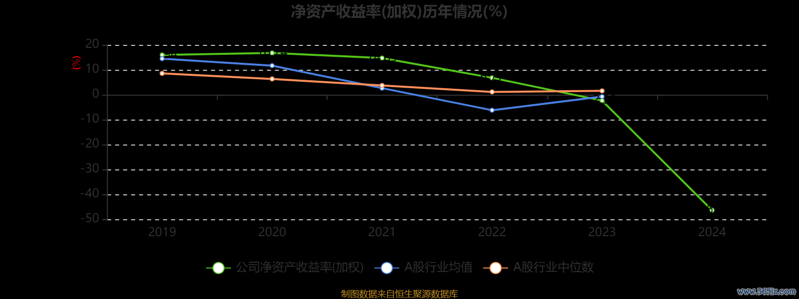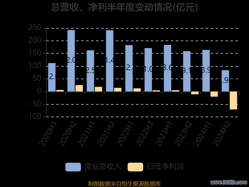 数据显示,2024年公司加权平均净资产收益率为-46.36%,较上年同期下降43.98个百分点。